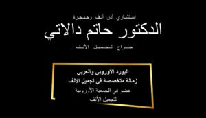 "كعيادة رائدة في طب الأنف والأذن والحنجرة، نحن فخورون بوجود الدكتور حاتم دالاتي عضوًا في الجمعية المرموقة لجراحة الأنف في أوروبا مما يعكس التزامنا بتقديم رعاية عالمية المستوى في جراحة الأنف."